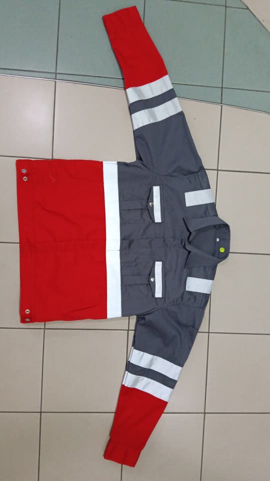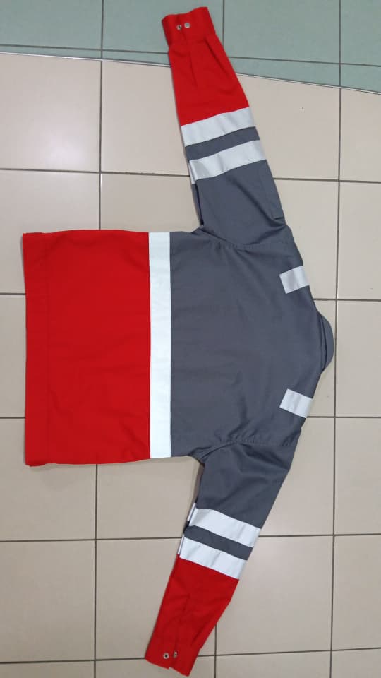 Customade 2 tones colour TC drill safety jacket with inner pocket at both side c/w 2” grey reflectors on the sleeves, shoulder and at the back