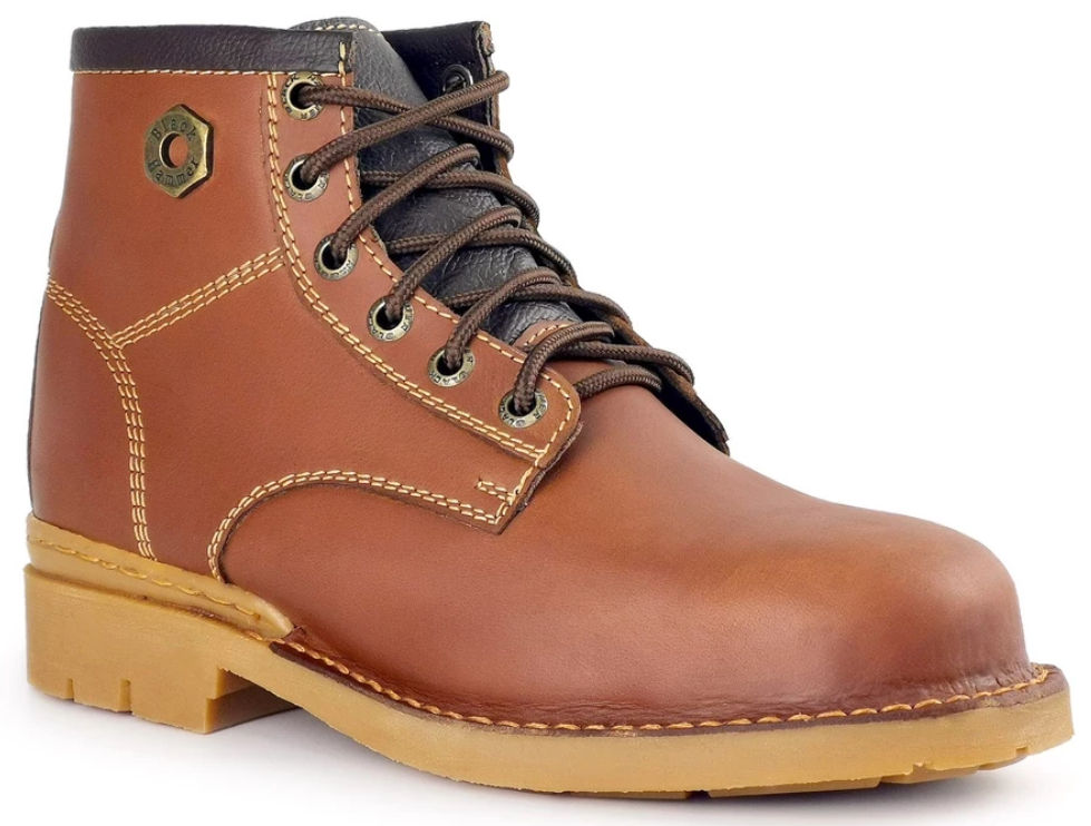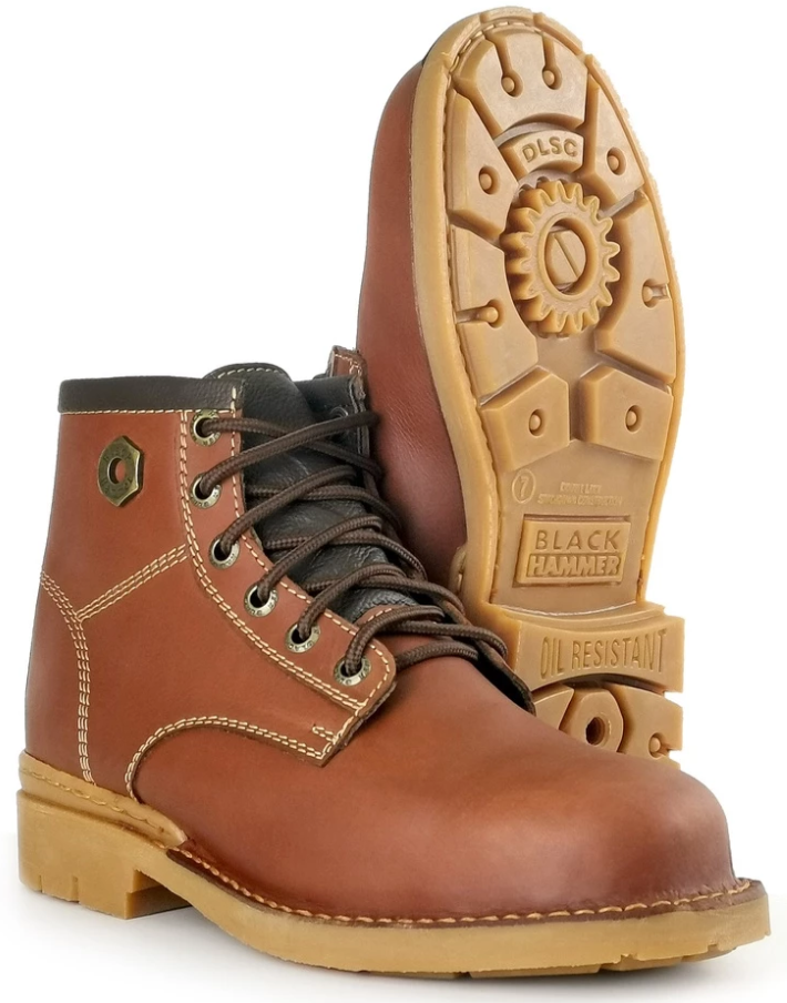 Genuine Leather Men Mid Cut Shoelace Black Hammer Safety Shoes BH 4892 with Steel Toe Cap, Steel Midsole and Oil Resistant Rubber Sole