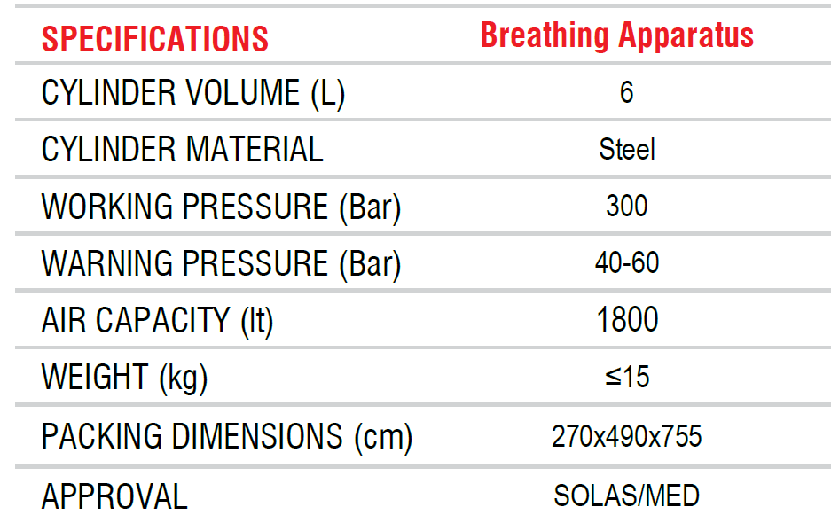 Lalizas (Europe) Self Contained Breathing Apparatus SCBA, SOLASMED Approved cw 6L, 300 Bar Cylinder